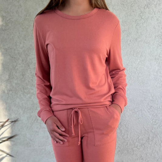 Softies Dream Jersey Crew Neck Lounge Set Copper Rose