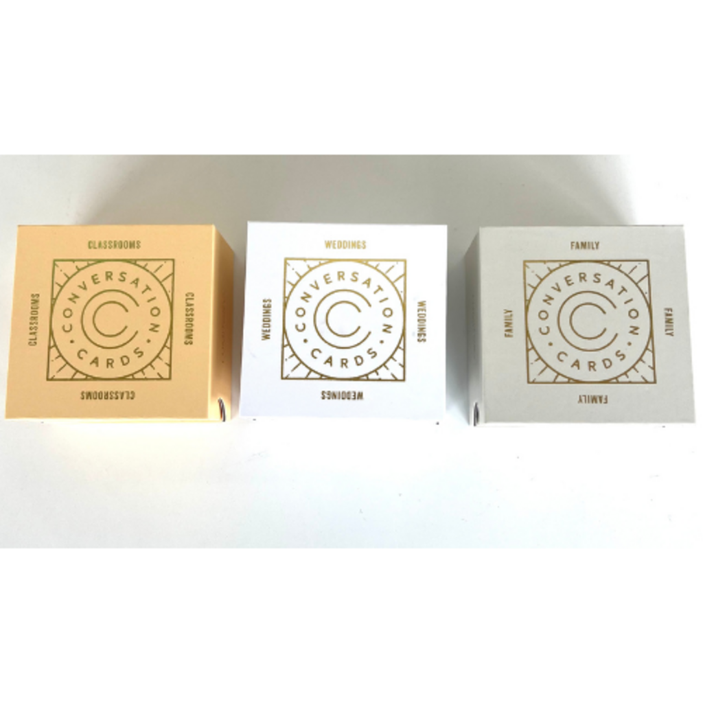 Spark connection anytime, anywhere with the Conversation Card Trio, featuring Family, Wedding, and Classroom editions. Thoughtfully designed for every setting, each set includes engaging prompts that foster storytelling, laughter, and meaningful dialogue. Whether you're gathered at the dinner table, seated at a wedding reception, or starting your school day, these cards make it easy to turn everyday moments into something memorable.